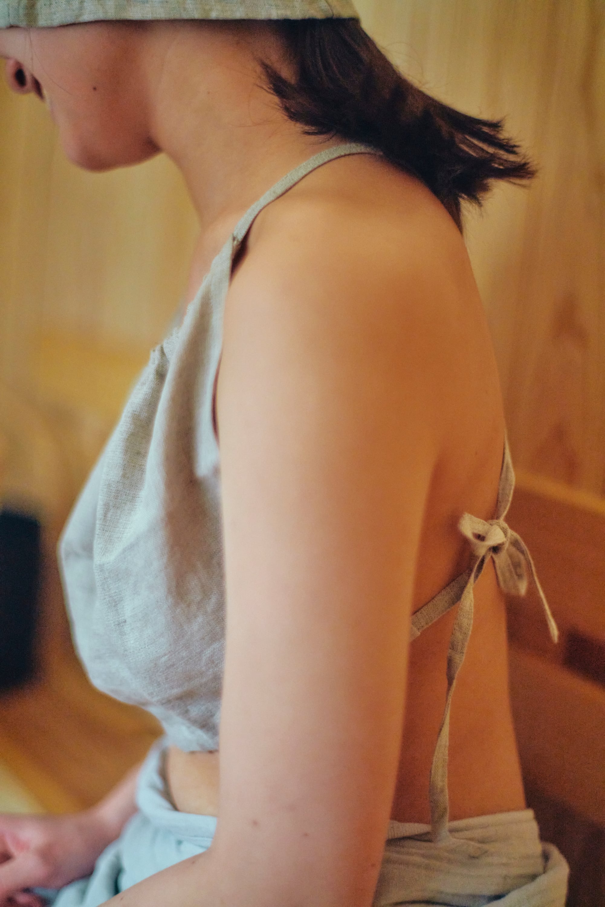 胸周りにふわっとカバーされ両手も自由になるのでリラックスしてサウナを楽しめます。